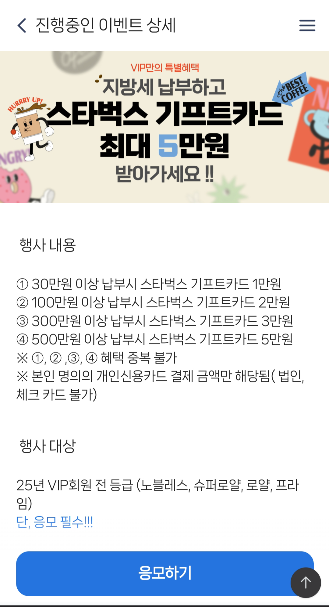 위의 정보 보시고 본인에게 맞는 카드로 지방세 납부 하시면 좋을거 같아요^^