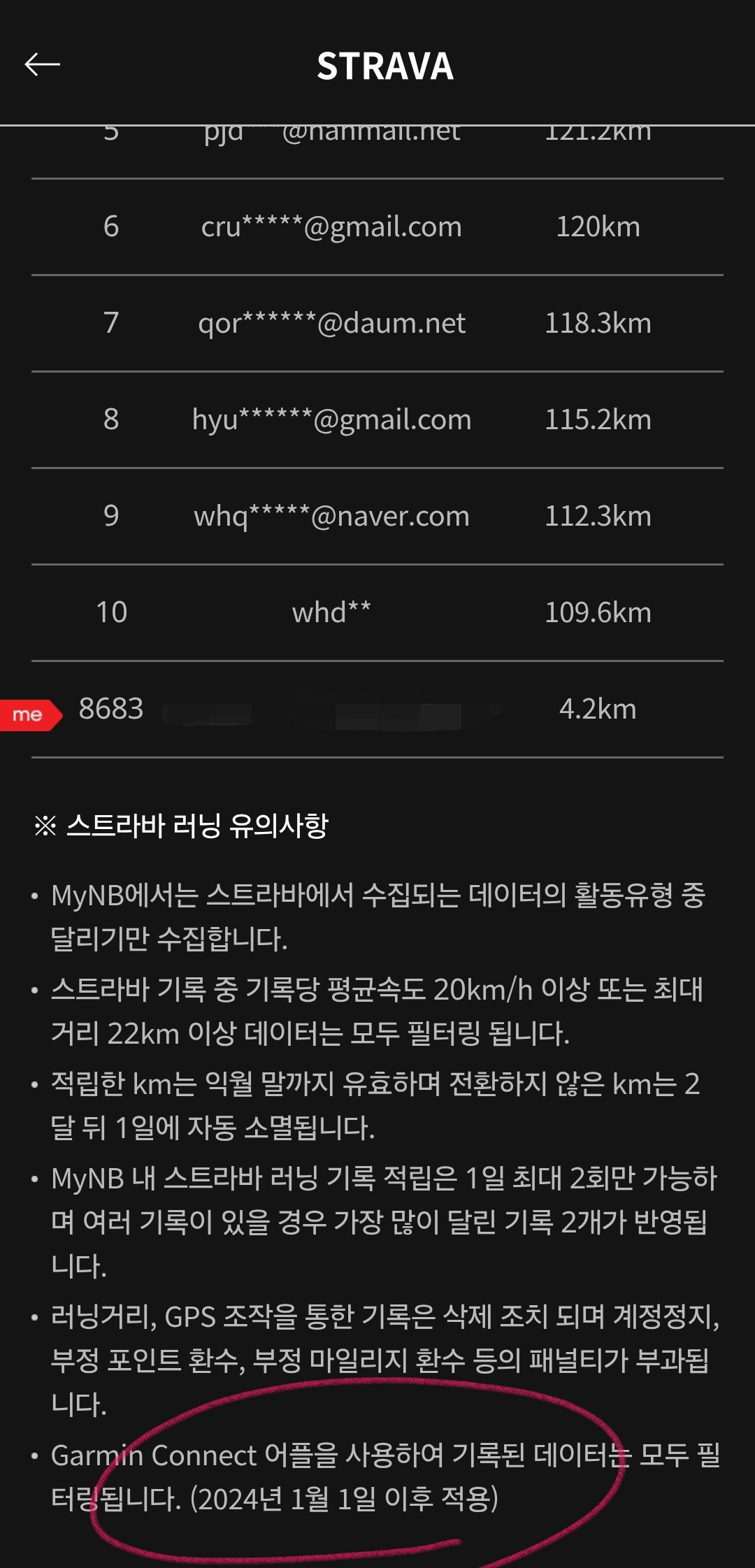 - 뉴발란스 앱에서 어떤 사유인지는 모르겠지만 가민에서 오는 데이터를 인정하지 않는다.