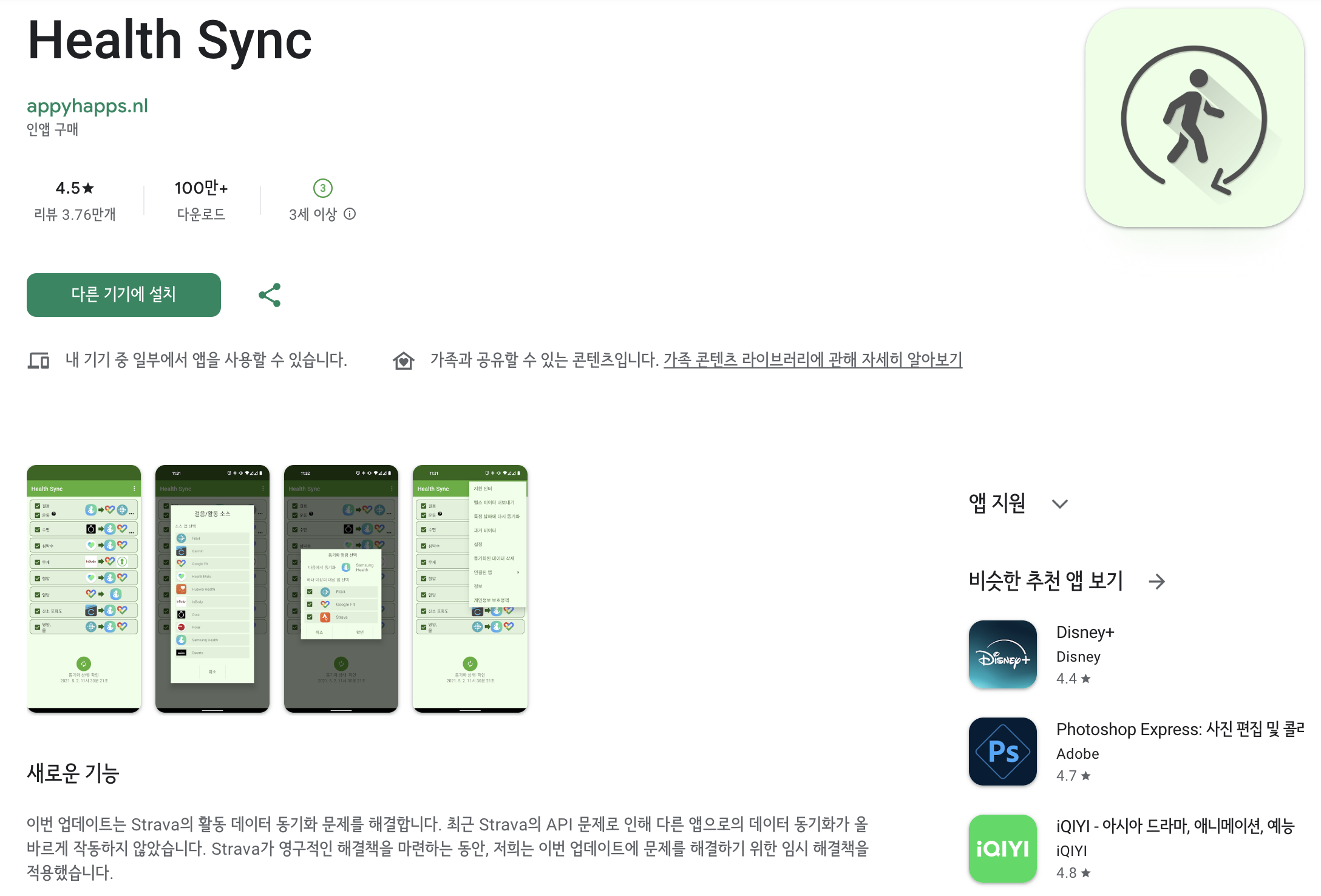 - 위의 앱들에 들어가서 설정을 클릭하면 표현이 다 다르지만 manage app 이니 뭐 연결된 앱이니 표현이 다를뿐 앱들을 연결할수 있는 세팅이 있다. 이걸 해주면 위와 같은 세팅이 되는데 이걸 쉽고 편하게 연결해주는 앱이 헬스싱크라서 중심이라고 적어봤다.
